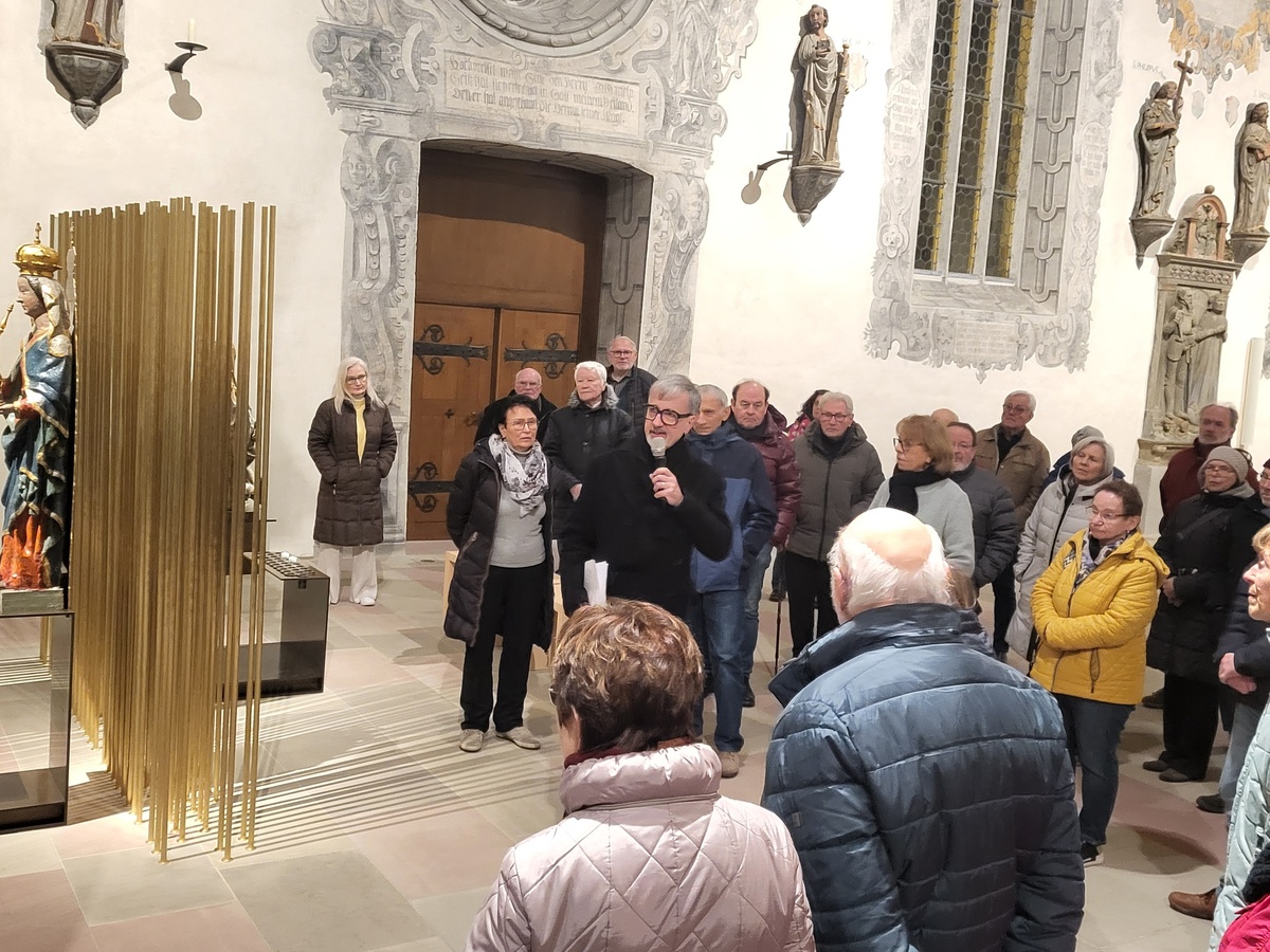 Vorgestellt wurde den Interessierten auch der neue Marienort, an dem die historische Talkirchmadonna und eine Pieta einen neuen Platz gefunden haben. Im Marienort habe das Künstlerehepaar Lutzenberger erneut Transparenz und filigrane Gestaltung verwirklicht, welche den Lichteinfall in der Kirche aufnimmt.